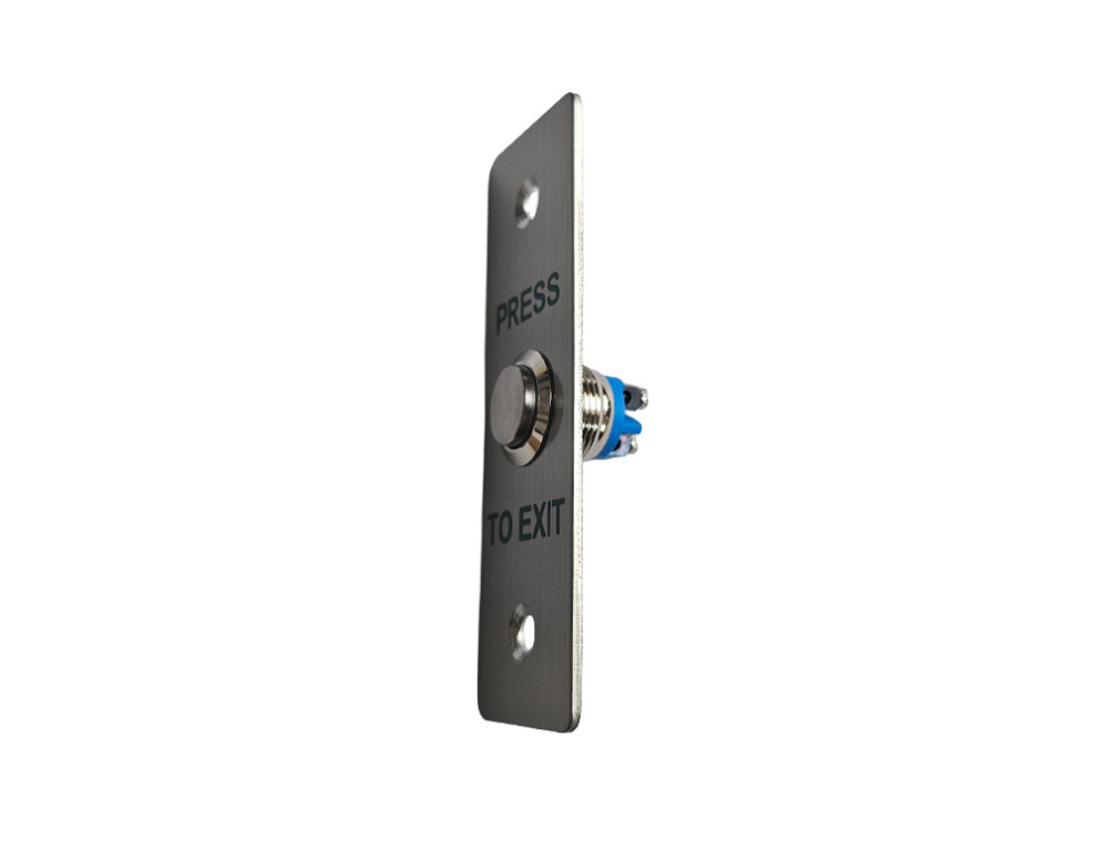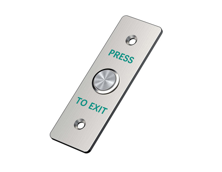 Izhodna tipka z ohišjem iz nerjavečega jekla omogoča uporabnikom odpiranje vrat iz notranje strani varovanega prostora. Tipko se poveže na napravo za kontrolo dostopa in sproži rele na krmilniku.
