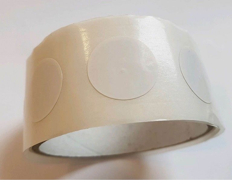 Okrogla RFID nalepka iz papirja, ki jo lahko tudi potiskamo. Frekvenca delovanja je 13,56 MHz, spomin 1k, protokol ISO 14443A.