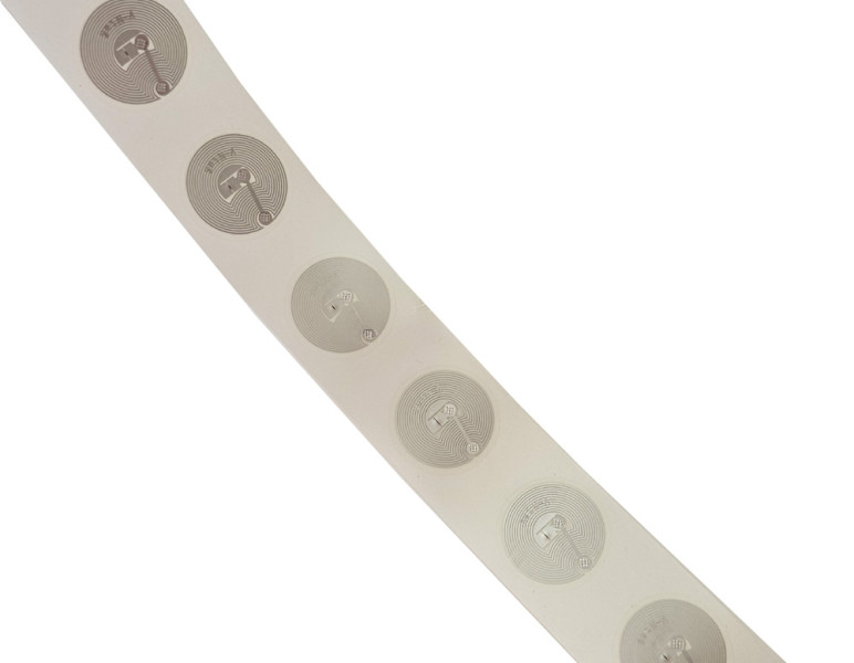 Prozorna NFC nalepka (angl. wet inlay) vsebuje enega izmed najbolj razširjenih NFC čipov NTAG213.