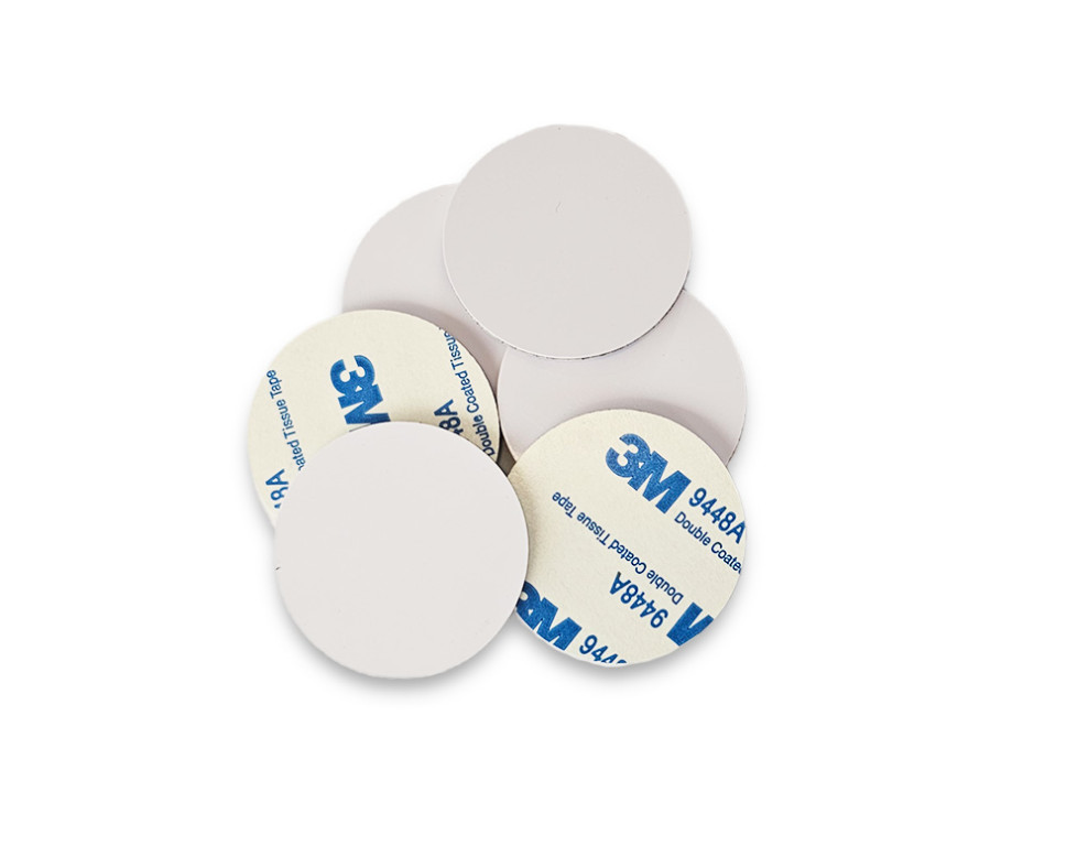 Domov / RFID in NFC mediji / Robustne nalepke s čipom MIFARE® DESFire® EV2 4K fi 38 mm in z zaščito za na kovino